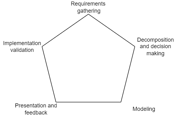 At the Software Architecture conference by O'Reilly, Eltjo Poort described this as a maturity model in the form of a pentagon. However, for problem-solving, I define the edges a little differently, as shown in the diagram below.